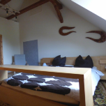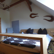Mit 100m^2 bietet die Wohnung reichlich Platz für mehrere Personen: Ein Badezimmer, zwei Schlafzimmer mit je einem Doppelbett und einem Kinderbett, sowie ein Schlafsofa im Wohnzimmer erlauben es bis zu 6 Personen und einem Kleinkind ganz im grünen Urlaub zu machen.
